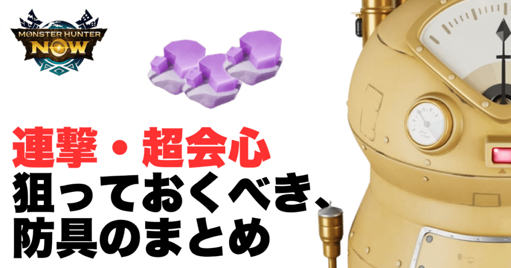 【モンハンNow】今回の当たりスキルは、チェンジブースト・連撃・超会心!狙っておくべき防具まとめ!漂移錬成&モンスターピックアップイベント