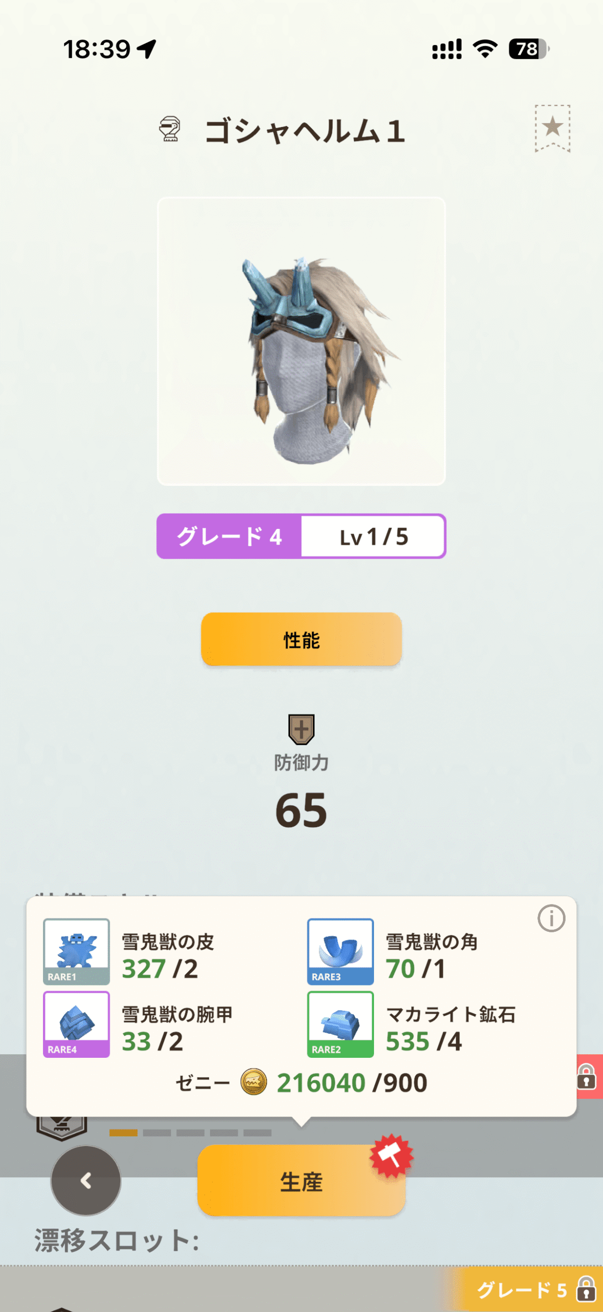 | RARE5 (★6〜) | 雪鬼獣の良質な毛 |