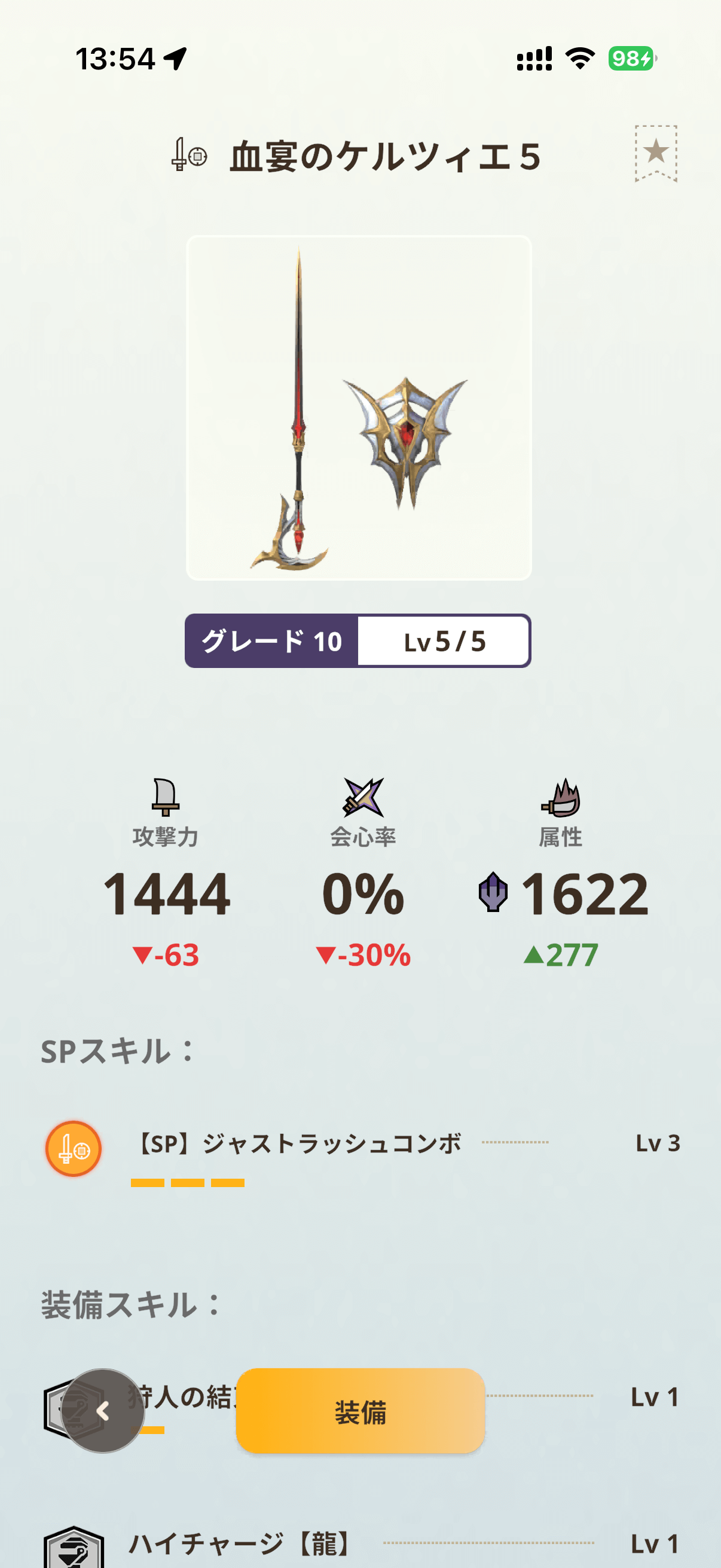 このハイチャージ【龍】は、残り体力に応じて龍属性攻撃力が上昇するスキルで、体力が多いほど属性値が伸びていくという明確な特徴を持ちます。