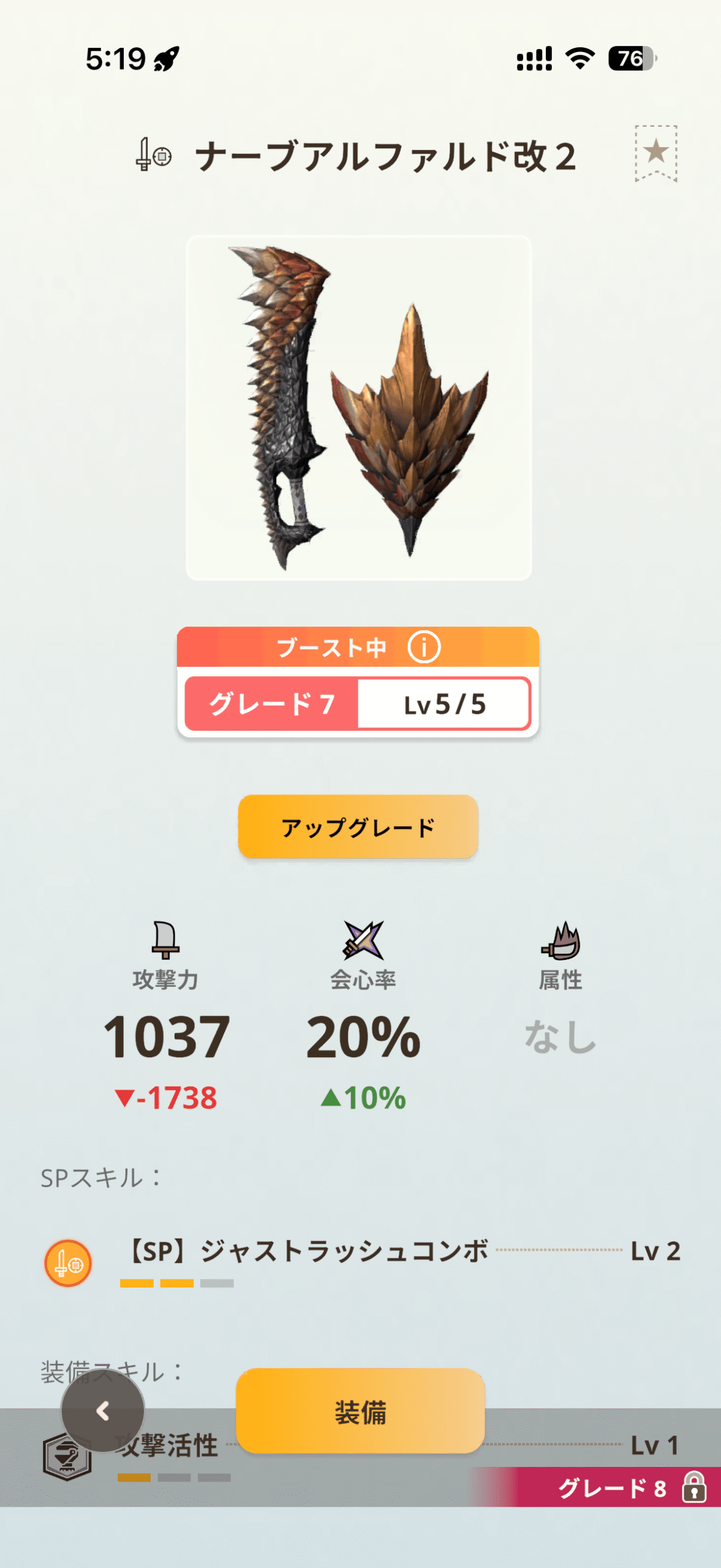 無属性武器の強みは、モンスターを選ばない高い汎用性にあります。まずは1本しっかり強化しておけば、★8〜★9のモンスターでも安定して討伐可能なポテンシャルを持っています。