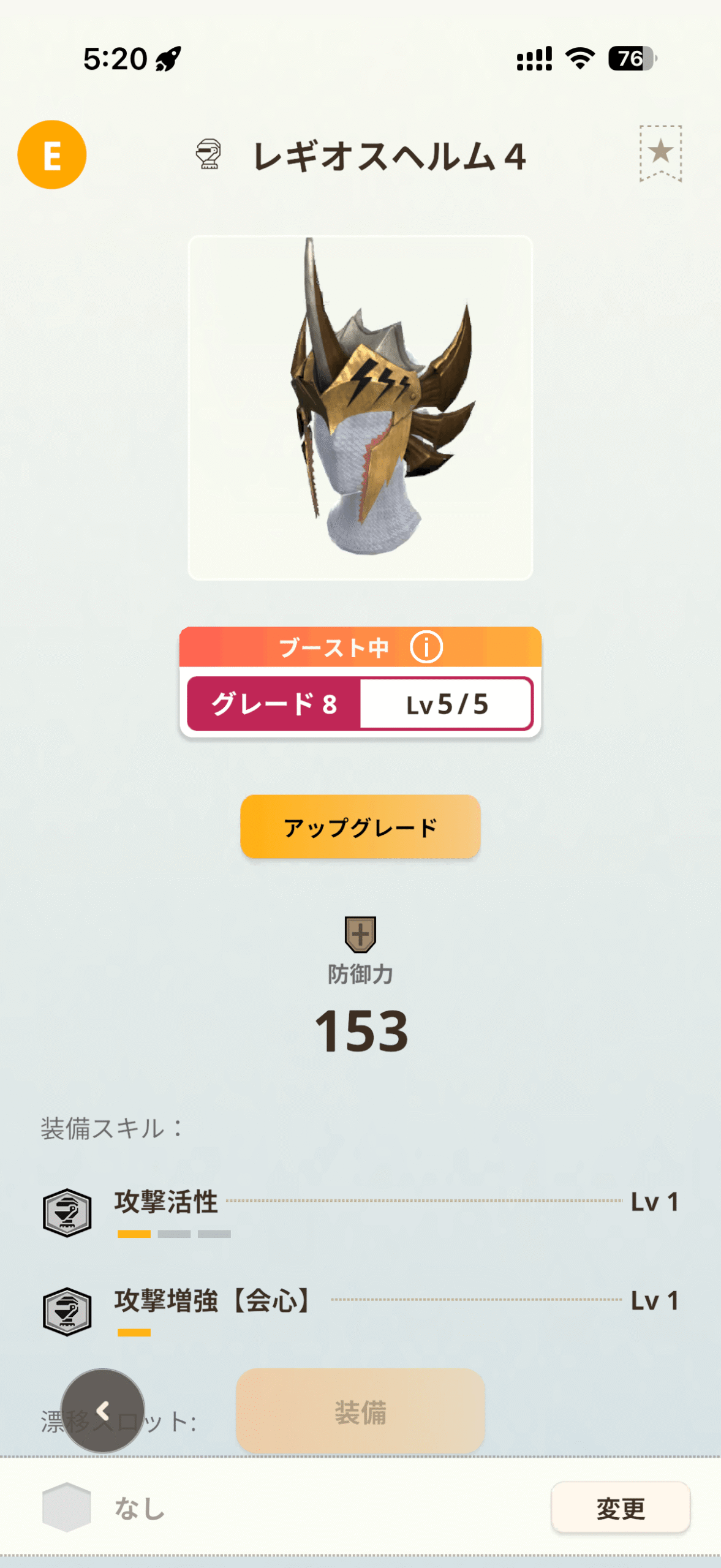 新スキル「攻撃増強【会心】」が唯一付与されており、武器の会心率に応じて攻撃力が上昇する、非常に強力なスキルを備えています。